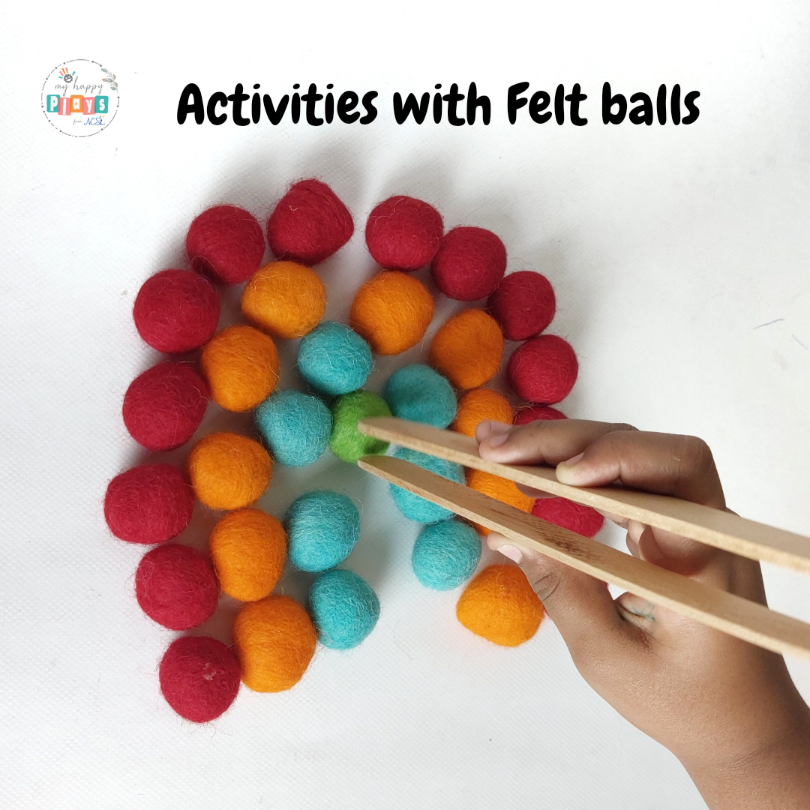 Felt Balls have great textural learning benefits along with Color Recognition skill building