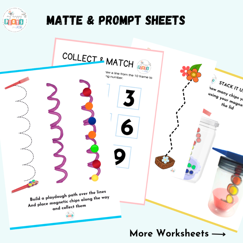 SET C: WAND with 25 Chips and MATT LAMINATED SHEETS 8 numbers, PLAY PROMPTS with Magnetic Wand & Chip Illustrated.