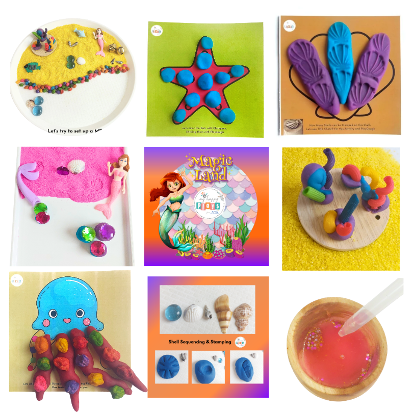 3. Dive into the depths of creativity and imagination with the included Playdough in Blue and Purple 50g each (100g total). The sea-themed dough stamp enables your child to create their underwater masterpiece. 🌊🎨✨