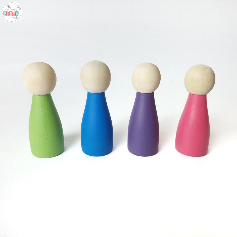 7 PEG DOLLS in Rainbow colors repsent the NATURAL PHENOMENA RAINBOW. Used in themed play, imaginative, repsentational etc..
