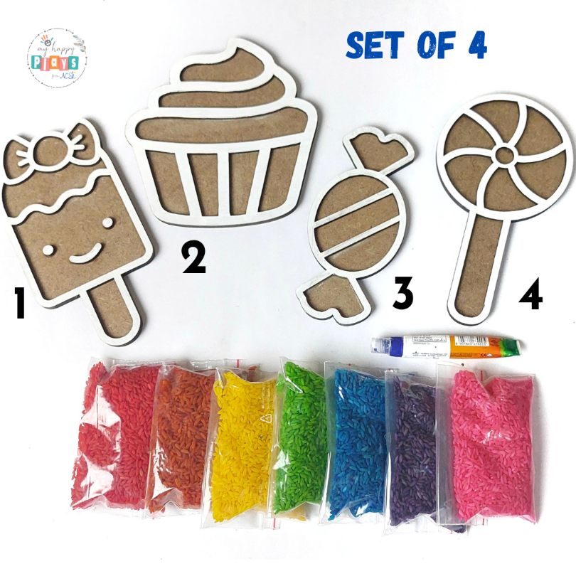 RICE ART is a GREAT CREATIVE play idea for young children, this set enables Playway creativity and are GREAT FOR GROUP ACTIVITIES & GIFTING